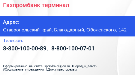 Газпромбанк, терминал по адресу Ставропольский край, Благодарный, Оболенского, 142 в дальнейшем Организация, размещена в следующих категориях:
