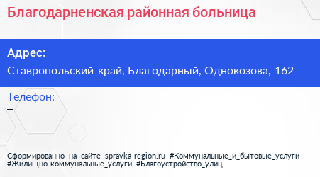 Благодарненская районная больница по адресу Ставропольский край, Благодарный, Однокозова, 162 в дальнейшем Организация, размещена в следующих категориях: