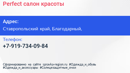 Perfect, салон красоты по адресу Ставропольский край, Благодарный, в дальнейшем Организация, размещена в следующих категориях:
