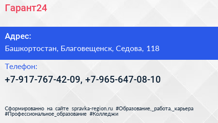 Гарант24 по адресу Башкортостан, Благовещенск, Седова, 118 в дальнейшем Организация, размещена в следующих категориях: