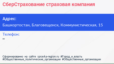 СберСтрахование, страховая компания по адресу Башкортостан, Благовещенск, Коммунистическая, 15 в дальнейшем Организация, размещена в следующих категориях: