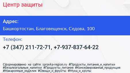 Центр защиты по адресу Башкортостан, Благовещенск, Седова, 100 в дальнейшем Организация, размещена в следующих категориях: