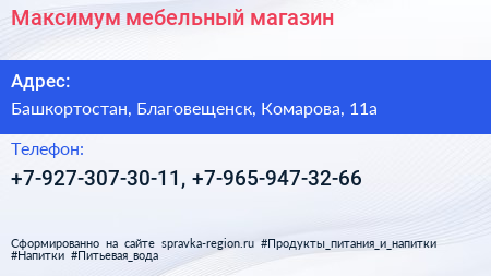 Максимум, мебельный магазин по адресу Башкортостан, Благовещенск, Комарова, 11a в дальнейшем Организация, размещена в следующих категориях: