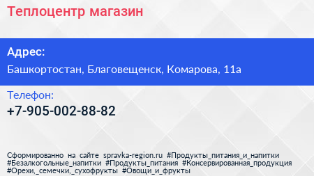 Теплоцентр, магазин по адресу Башкортостан, Благовещенск, Комарова, 11a в дальнейшем Организация, размещена в следующих категориях: