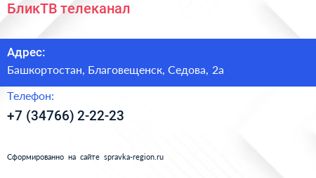БликТВ, телеканал по адресу Башкортостан, Благовещенск, Седова, 2а в дальнейшем Организация, размещена в следующих категориях: