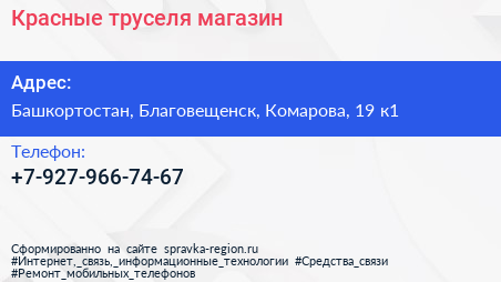 Красные труселя, магазин по адресу Башкортостан, Благовещенск, Комарова, 19 к1 в дальнейшем Организация, размещена в следующих категориях: