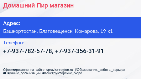 Домашний Пир, магазин по адресу Башкортостан, Благовещенск, Комарова, 19 к1 в дальнейшем Организация, размещена в следующих категориях: