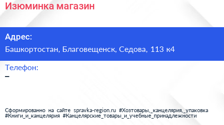 Изюминка, магазин по адресу Башкортостан, Благовещенск, Седова, 113 к4 в дальнейшем Организация, размещена в следующих категориях: