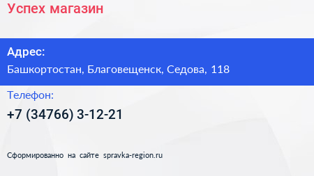 Успех, магазин по адресу Башкортостан, Благовещенск, Седова, 118 в дальнейшем Организация, размещена в следующих категориях: