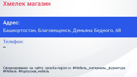 Хмелек, магазин по адресу Башкортостан, Благовещенск, Демьяна Бедного, 68 в дальнейшем Организация, размещена в следующих категориях: