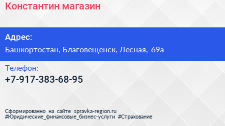 Константин, магазин по адресу Башкортостан, Благовещенск, Лесная, 69а в дальнейшем Организация, размещена в следующих категориях: