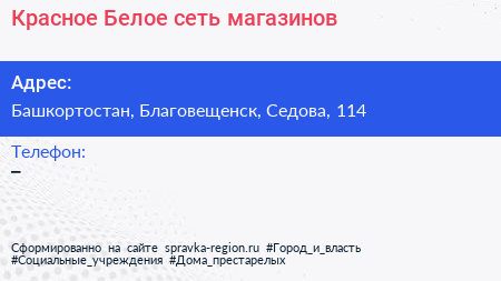 Красное & Белое, сеть магазинов по адресу Башкортостан, Благовещенск, Седова, 114 в дальнейшем Организация, размещена в следующих категориях: