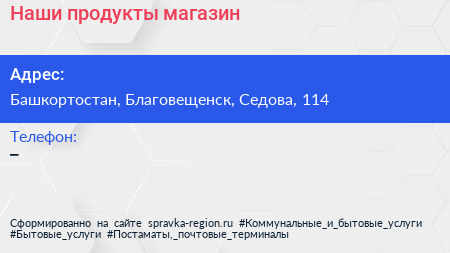 Наши продукты, магазин по адресу Башкортостан, Благовещенск, Седова, 114 в дальнейшем Организация, размещена в следующих категориях: