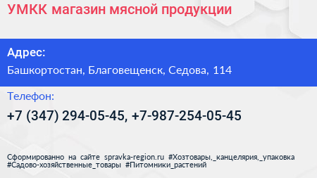 УМКК, магазин мясной продукции по адресу Башкортостан, Благовещенск, Седова, 114 в дальнейшем Организация, размещена в следующих категориях: