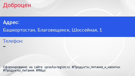 Доброцен по адресу Башкортостан, Благовещенск, Шоссейная, 1 в дальнейшем Организация, размещена в следующих категориях: