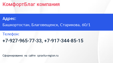 КомфортБлаг, компания по адресу Башкортостан, Благовещенск, Старикова, 60/1 в дальнейшем Организация, размещена в следующих категориях: