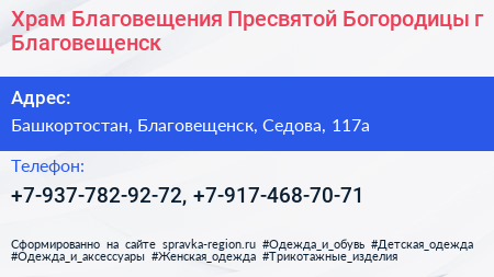 Храм Благовещения Пресвятой Богородицы, г. Благовещенск по адресу Башкортостан, Благовещенск, Седова, 117а в дальнейшем Организация, размещена в следующих категориях: