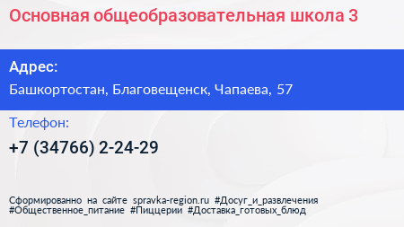 Основная общеобразовательная школа №3 по адресу Башкортостан, Благовещенск, Чапаева, 57 в дальнейшем Организация, размещена в следующих категориях: