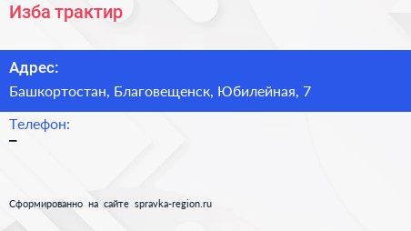Изба, трактир по адресу Башкортостан, Благовещенск, Юбилейная, 7 в дальнейшем Организация, размещена в следующих категориях: