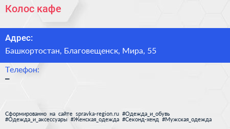 Колос, кафе по адресу Башкортостан, Благовещенск, Мира, 55 в дальнейшем Организация, размещена в следующих категориях:
