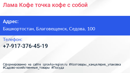 Лама Кофе, точка кофе с собой по адресу Башкортостан, Благовещенск, Седова, 100 в дальнейшем Организация, размещена в следующих категориях: