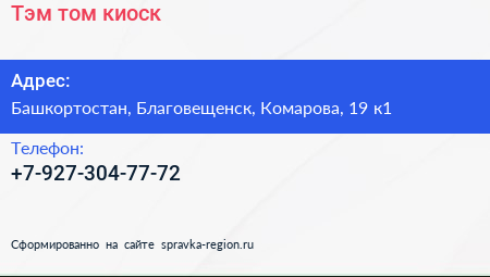 Тэм-том, киоск по адресу Башкортостан, Благовещенск, Комарова, 19 к1 в дальнейшем Организация, размещена в следующих категориях: