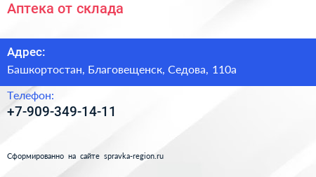 Аптека от склада по адресу Башкортостан, Благовещенск, Седова, 110а в дальнейшем Организация, размещена в следующих категориях: