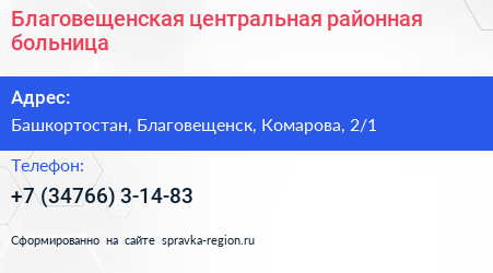 Благовещенская центральная районная больница по адресу Башкортостан, Благовещенск, Комарова, 2/1 в дальнейшем Организация, размещена в следующих категориях: