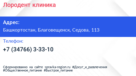 Лородент, клиника по адресу Башкортостан, Благовещенск, Седова, 113 в дальнейшем Организация, размещена в следующих категориях: