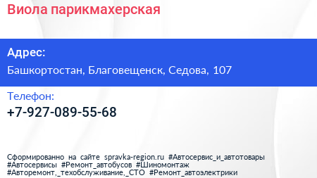 Виола, парикмахерская по адресу Башкортостан, Благовещенск, Седова, 107 в дальнейшем Организация, размещена в следующих категориях: