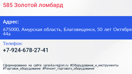 585 Золотой, ломбард по адресу 675000, Амурская область, Благовещенск, 50 лет Октября, 44а в дальнейшем Организация, размещена в следующих категориях: