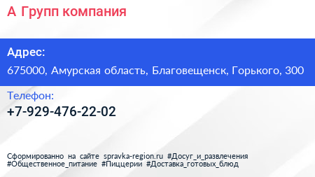 А-Групп, компания по адресу 675000, Амурская область, Благовещенск, Горького, 300 в дальнейшем Организация, размещена в следующих категориях: