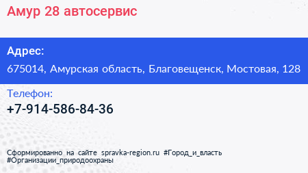 Амур 28, автосервис по адресу 675014, Амурская область, Благовещенск, Мостовая, 128 в дальнейшем Организация, размещена в следующих категориях: