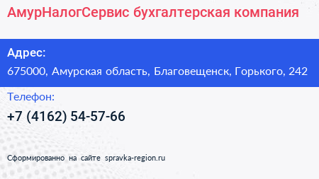 АмурНалогСервис, бухгалтерская компания по адресу 675000, Амурская область, Благовещенск, Горького, 242 в дальнейшем Организация, размещена в следующих категориях: