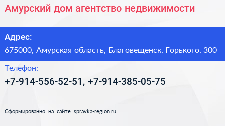 Амурский дом, агентство недвижимости по адресу 675000, Амурская область, Благовещенск, Горького, 300 в дальнейшем Организация, размещена в следующих категориях: