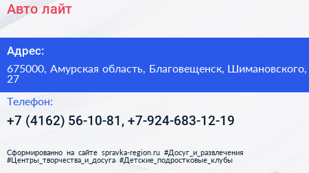 Авто-лайт по адресу 675000, Амурская область, Благовещенск, Шимановского, 27 в дальнейшем Организация, размещена в следующих категориях: