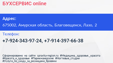 БУХСЕРВИС.online по адресу 675002, Амурская область, Благовещенск, Лазо, 2 в дальнейшем Организация, размещена в следующих категориях: