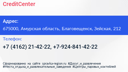 CreditCenter по адресу 675000, Амурская область, Благовещенск, Зейская, 212 в дальнейшем Организация, размещена в следующих категориях: