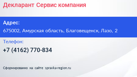 Декларант-Сервис, компания по адресу 675002, Амурская область, Благовещенск, Лазо, 2 в дальнейшем Организация, размещена в следующих категориях: