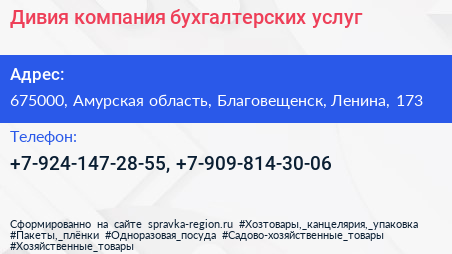 Дивия, компания бухгалтерских услуг по адресу 675000, Амурская область, Благовещенск, Ленина, 173 в дальнейшем Организация, размещена в следующих категориях: