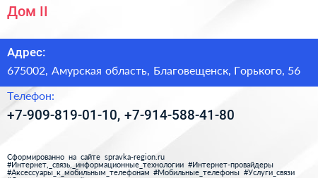Дом II по адресу 675002, Амурская область, Благовещенск, Горького, 56 в дальнейшем Организация, размещена в следующих категориях: