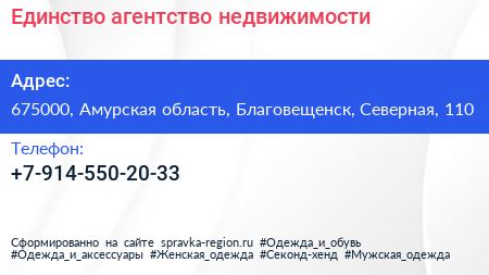 Единство, агентство недвижимости по адресу 675000, Амурская область, Благовещенск, Северная, 110 в дальнейшем Организация, размещена в следующих категориях: