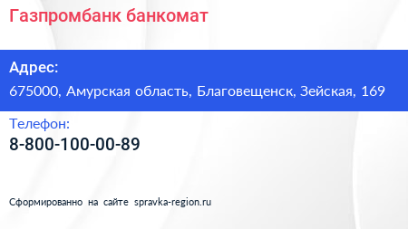 Газпромбанк, банкомат по адресу 675000, Амурская область, Благовещенск, Зейская, 169 в дальнейшем Организация, размещена в следующих категориях: