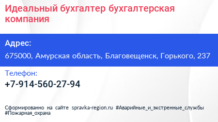 Идеальный бухгалтер, бухгалтерская компания по адресу 675000, Амурская область, Благовещенск, Горького, 237 в дальнейшем Организация, размещена в следующих категориях:
