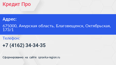Кредит.Про по адресу 675000, Амурская область, Благовещенск, Октябрьская, 173/1 в дальнейшем Организация, размещена в следующих категориях: