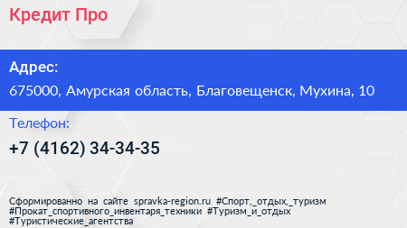 Кредит.Про по адресу 675000, Амурская область, Благовещенск, Мухина, 10 в дальнейшем Организация, размещена в следующих категориях: