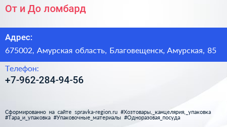 От и До, ломбард по адресу 675002, Амурская область, Благовещенск, Амурская, 85 в дальнейшем Организация, размещена в следующих категориях: