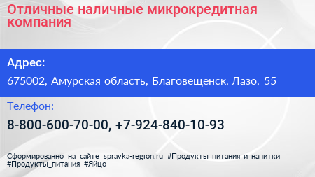 Отличные наличные, микрокредитная компания по адресу 675002, Амурская область, Благовещенск, Лазо, 55 в дальнейшем Организация, размещена в следующих категориях: