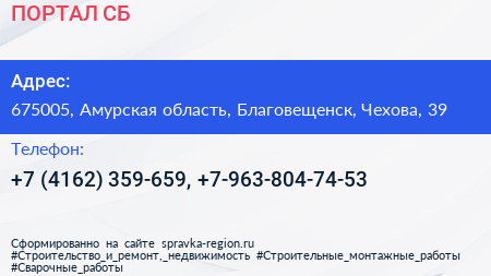 ПОРТАЛ-СБ по адресу 675005, Амурская область, Благовещенск, Чехова, 39 в дальнейшем Организация, размещена в следующих категориях: