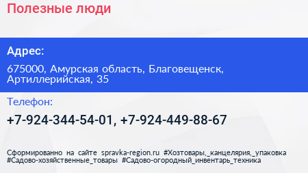 Полезные люди по адресу 675000, Амурская область, Благовещенск, Артиллерийская, 35 в дальнейшем Организация, размещена в следующих категориях: